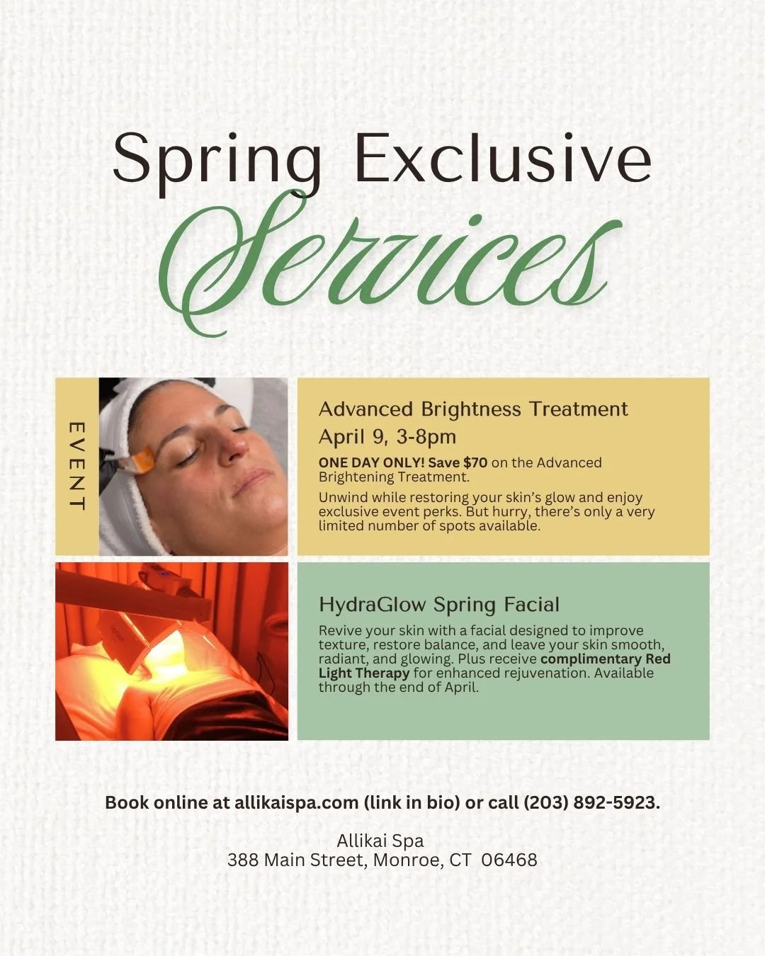 For inquiries or assistance regarding our offers, please contact us at Allikaispa@gmail.com or call us at (203) 892-5923. Our dedicated team is here to support you on your journey to wellness.
